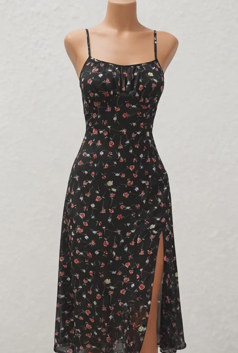 Embrace effortless summer style with this floral print boho beach dress. Delicate spaghetti straps and a square neckline create an elegant silhouette, while the flowing fabric keeps you cool and comfortable. The thigh-high slit adds movement and sophistication, perfect for beach days, casual outings, or warm-weather gatherings. The vibrant floral pattern brings a fresh, feminine touch to your seasonal wardrobe. Versatile enough to dress up or down, this piece is a must-have for any boho-inspired collection.